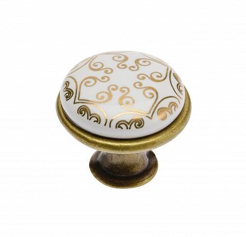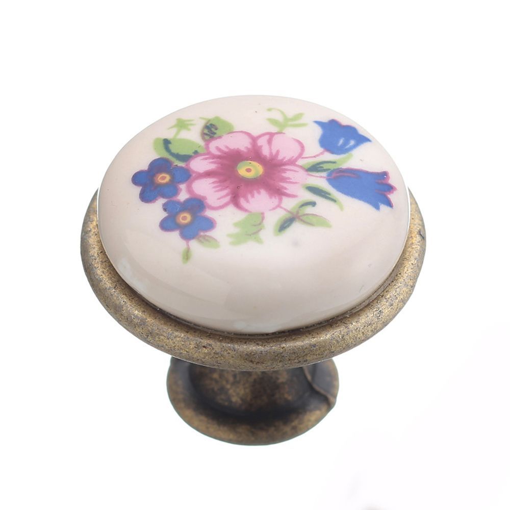 Ручка мебельная, керамика, кнопка, GP-0728-J4-A, (синяя роза) старое золото - лицевая фурнитура, выполненная в пастельных тонах, для уютных интерьеров соответствующих дизайнерских решений.