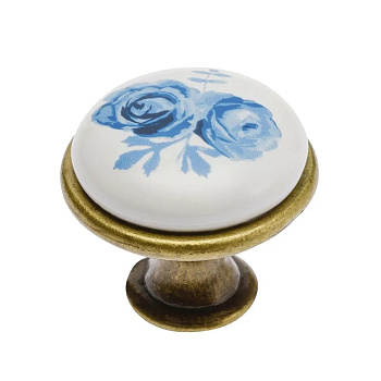 Ручка мебельная, керамика, кнопка, GP-0728-J4-A, (синяя роза) старое золото - лицевая фурнитура, выполненная в пастельных тонах, для уютных интерьеров соответствующих дизайнерских решений.