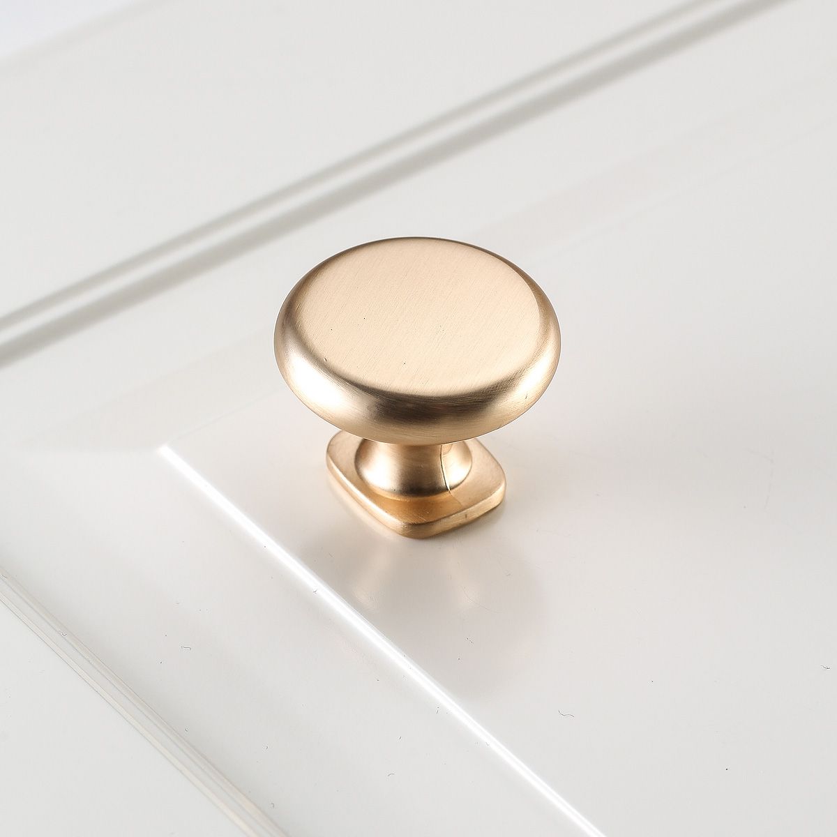 Ручка LORENA, брашированное золото - стильный вариант лицевой фурнитуры, красивая ручка-кнопка, отлично вписывающаяся в презентабельный интерьер, выполненный в соответствующем декоре.