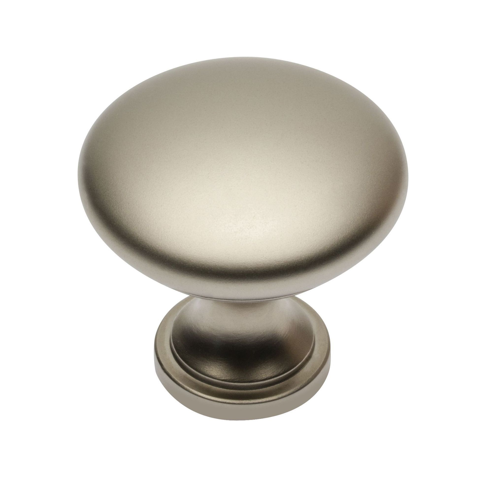 Ручка TERNI, брашированная латунь - стильный вариант лицевой фурнитуры, красивая ручка-кнопка, отлично вписывающаяся в презентабельный интерьер, выполненный в соответствующем декоре.