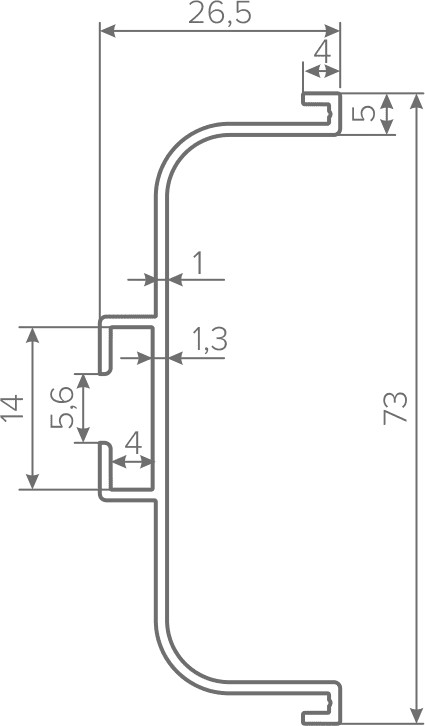 Горизонтальный профиль С-формы Gola-X AQ предназначен для фасадов второго и следующих рядов нижней базы мебельного гарнитура. Модель устанавливается между ящиками и позволяет захватывать как нижний, так и верхний фасады. В месте крепления увеличена толщина алюминия, что не допускает деформацию профиля при монтаже. Полезная длина профиля 5 000 мм, может продаваться длиной 2 500 мм (допуск +- 5 мм). Профиль представлен в семи цветах — алюминий, белый глянец, белый матовый, графит, золото, черный брашированный и черный матовый.