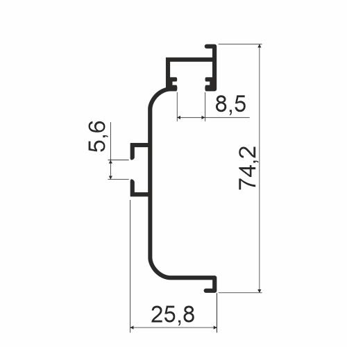 —Горизонтальная ручка-профиль C-образная с подсветкой, h=74,2 мм, L=4м, серебро