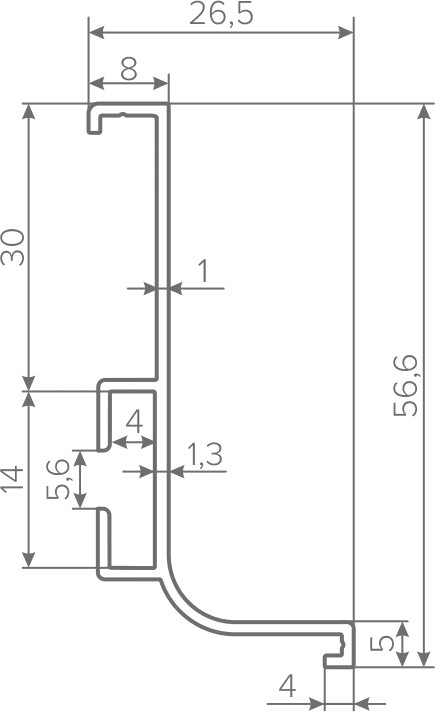 —Горизонтальная ручка-профиль L-образная, h=56,6мм, L=5м, золото матовое, AQ