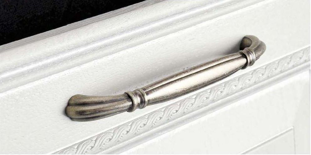 Если еще совсем недавно известные дизайнеры делали ставку на лаконичную мебель с чистыми фасадами, свободными от лишних деталей, то сегодня мебельные ручки вновь играют главную роль в создании безупречной мебельной композиции. Новая коллекция классических мебельных ручек RIMINI тм JET создана под впечатлением от итальянского искусства эпохи Возрождения, провозгласившей совершенство художественной формы. Ручка-скоба с межцентровым расстоянием 128 мм выполнена из прочного замака в двух традиционных покрытиях: античная бронза Валенсия и античное серебро. Плавные линии эффектно дополнены оригинальным орнаментом на лицевой стороне фурнитуры.
