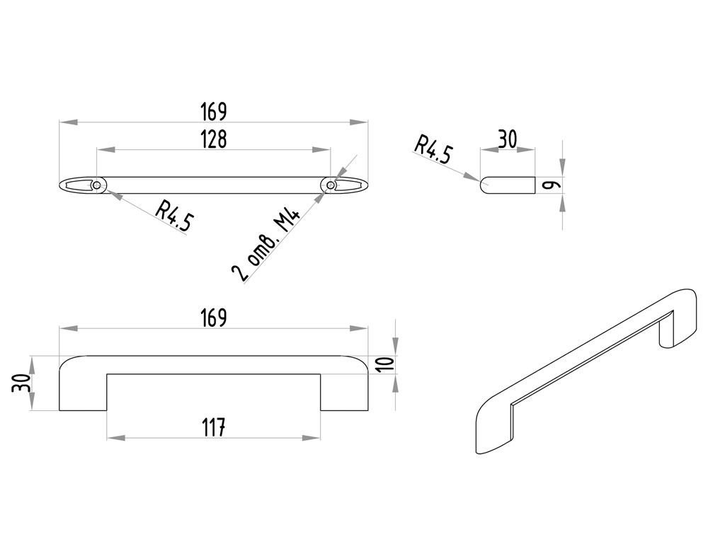 Межцентровое расстояние—128мм