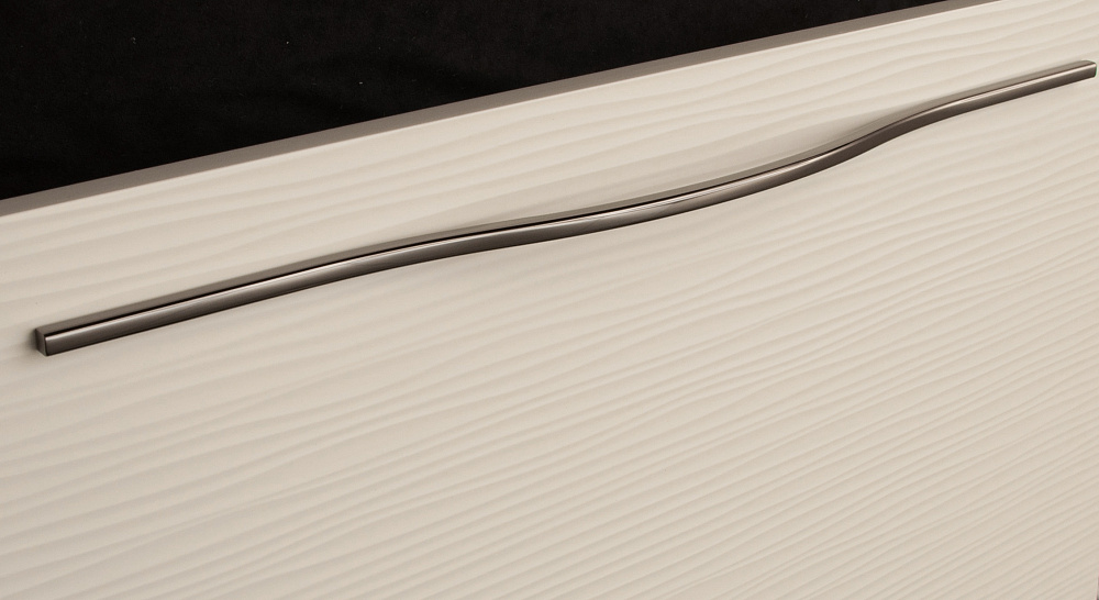 Коллекция представлена изящной ручкой-скобой с двойным межцентровым расстоянием 160/192мм и второй ручкой 448/480мм, что позволяет подобрать необходимую модель для шкафов и ящиков любых размеров: от больших до маленьких.