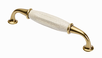 Ручка-скоба, ALATRI, 128мм, металл/керамика, старое золото/белый с паутинкой