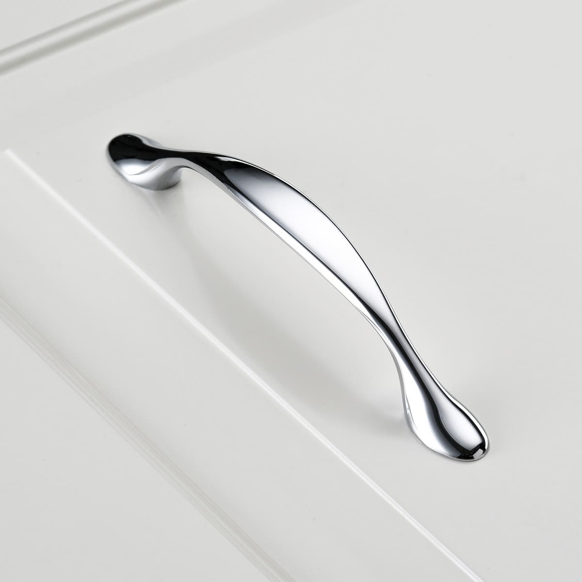 Ручка CAMAIO L-128, сатин - элегантная лицевая фурнитура, ручка-дуга плавной формы, хорошо смотрящаяся в классическом интерьере.
