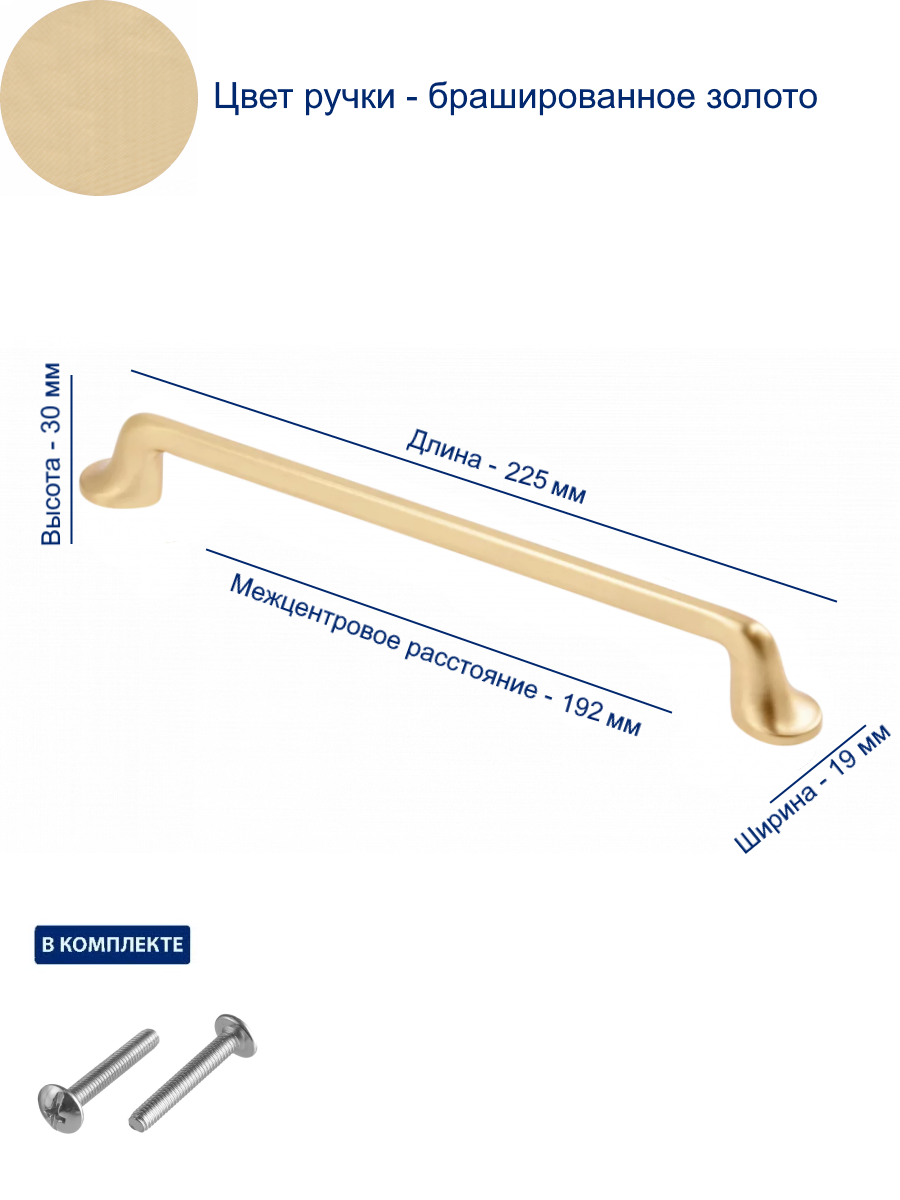 Ручка FABRICIO 192 мм, брашированное золото - современный образец лицевой фурнитуры, фигурная скоба, подражающая скандинавскому стилю.