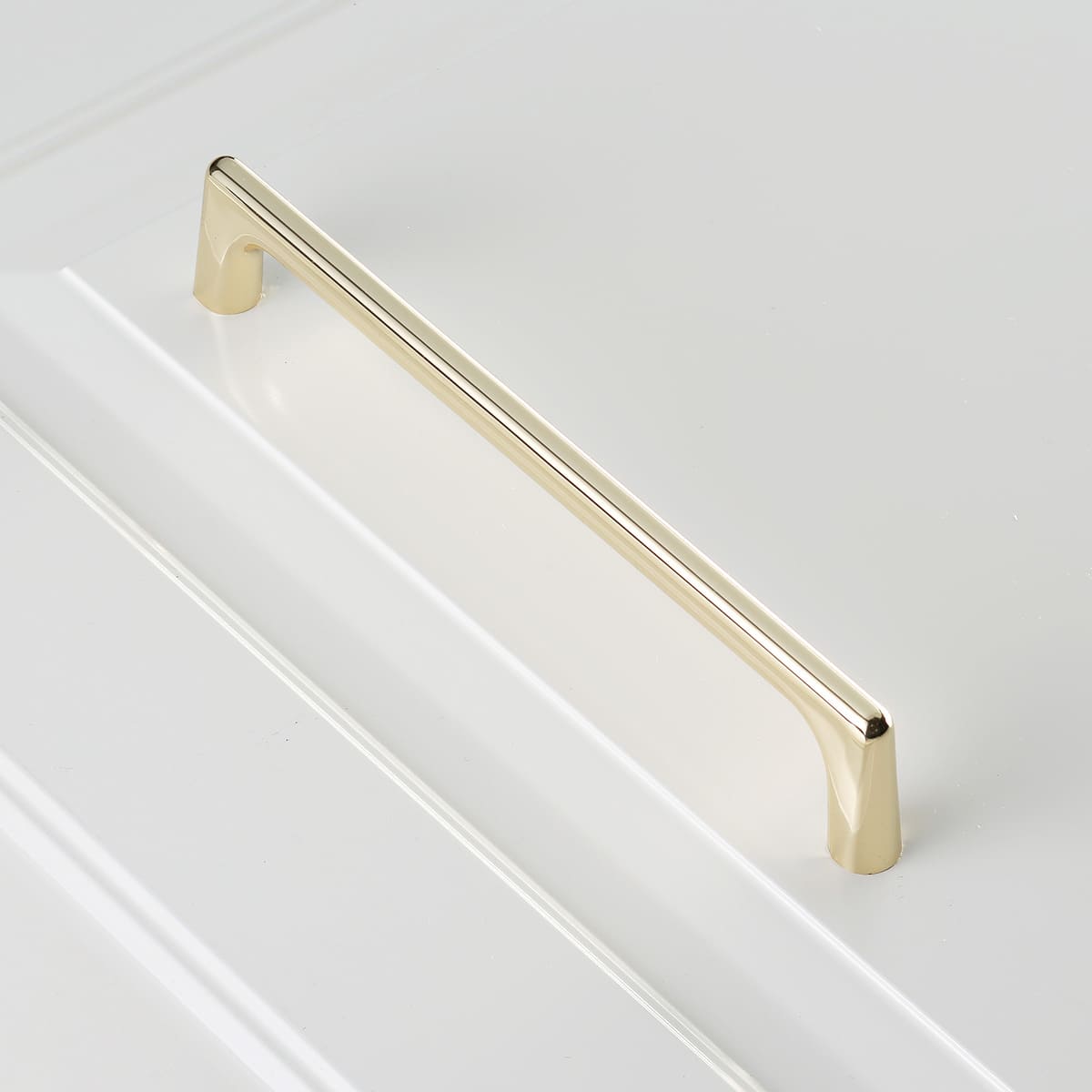 Ручка OCTAVIO L-160, золото - образец лицевой фурнитуры в стиле Модерн, П-образная ручка-скоба плавной формы.