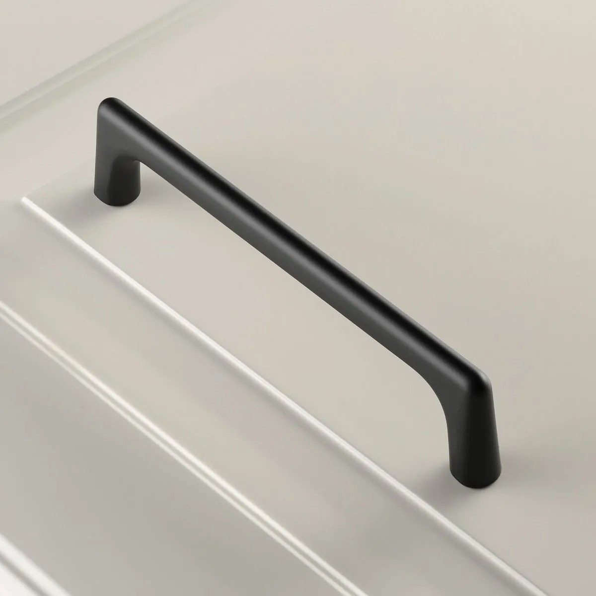 Ручка OCTAVIO L-160, золото - образец лицевой фурнитуры в стиле Модерн, П-образная ручка-скоба плавной формы.