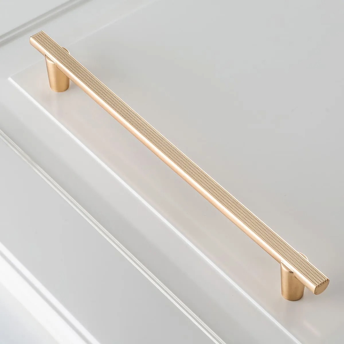 Ручка RAY 128 мм, брашированное золото - практичная лицевая фурнитура, ручка-скоба П-образной формы, подходящая для современных интерьеров с различными дизайнерскими решениями.