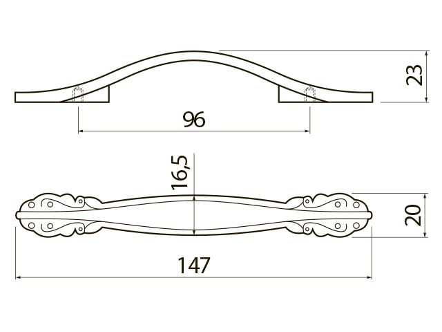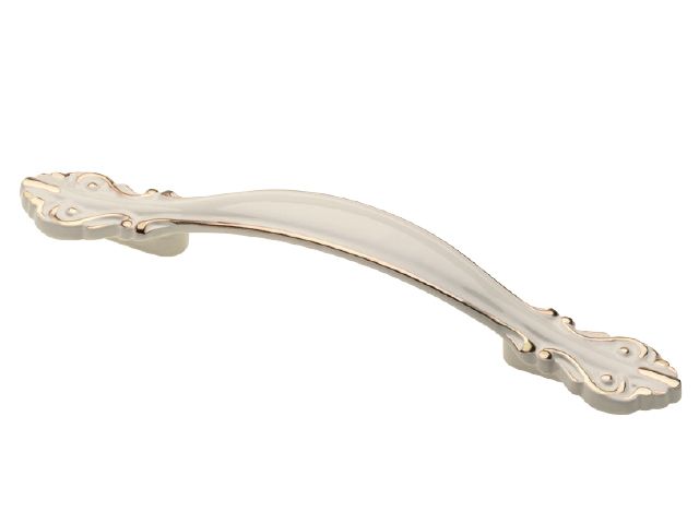 Ручка ROYAL1 L-096, белый/золото - лицевая фурнитура для винтажных интерьеров, изящная ручка-дуга в стиле Ретро.