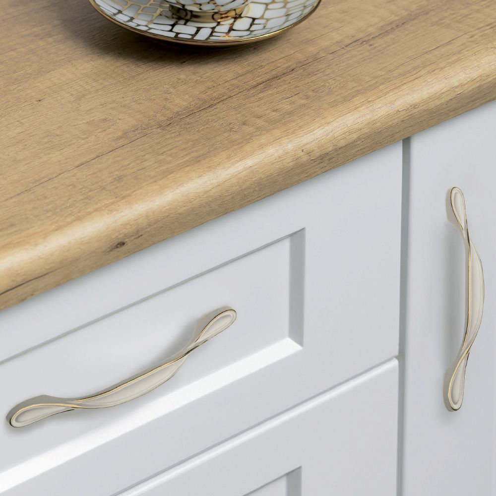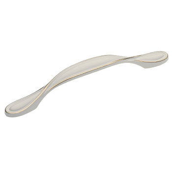 Ручка ROYAL1 L-096, белый/золото - лицевая фурнитура для винтажных интерьеров, изящная ручка-дуга в стиле Ретро.
