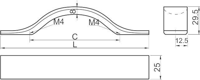 Ручка мебельная алюминиевая UA-OO-347/128 - привлекательная лицевая фурнитура, ручка-скоба П-образной формы с закруглениями.