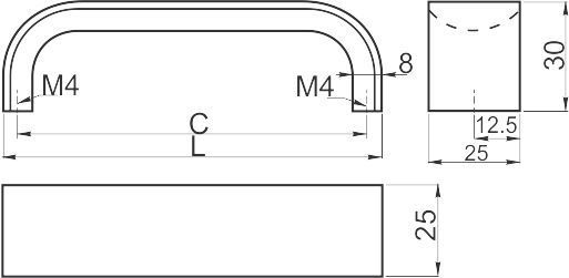 Ручка мебельная алюминиевая UA-OO-347/128 - привлекательная лицевая фурнитура, ручка-скоба П-образной формы с закруглениями.