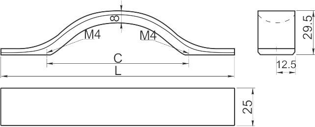 Ручка мебельная алюминиевая UA-OO-347/128 - привлекательная лицевая фурнитура, ручка-скоба П-образной формы с закруглениями.