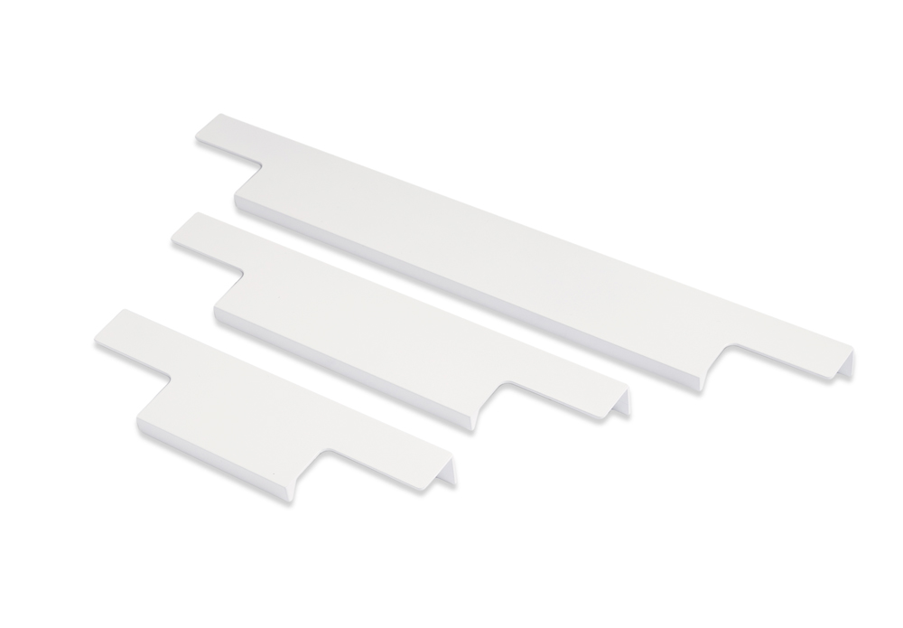 Накладные профильные ручки устанавливаются на торец дверного полотна, не загружая дополнительными деталями мебельный фасад.
