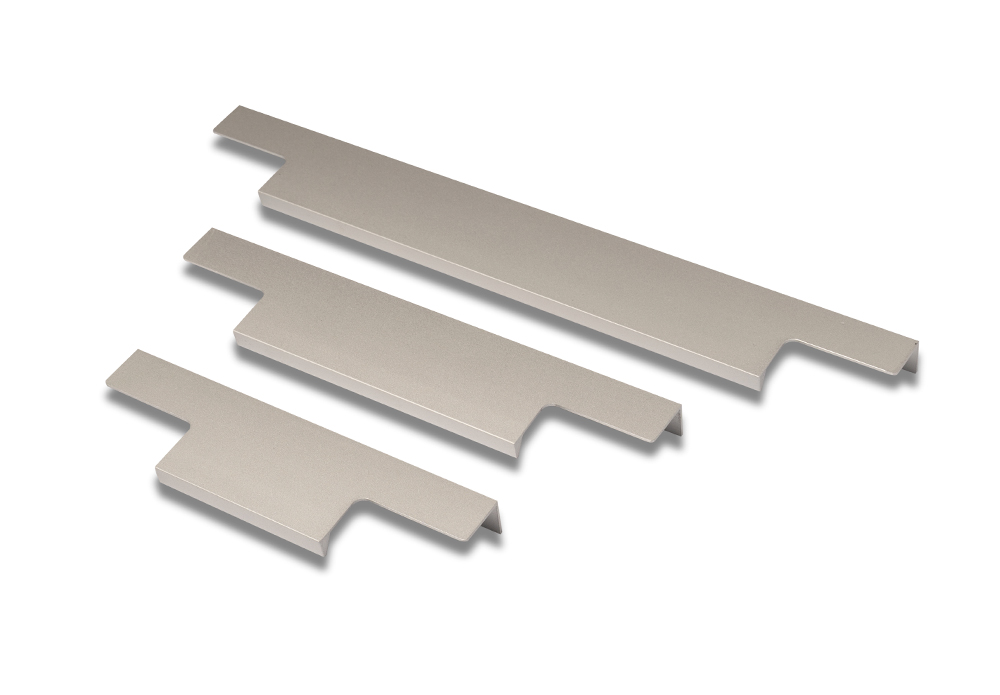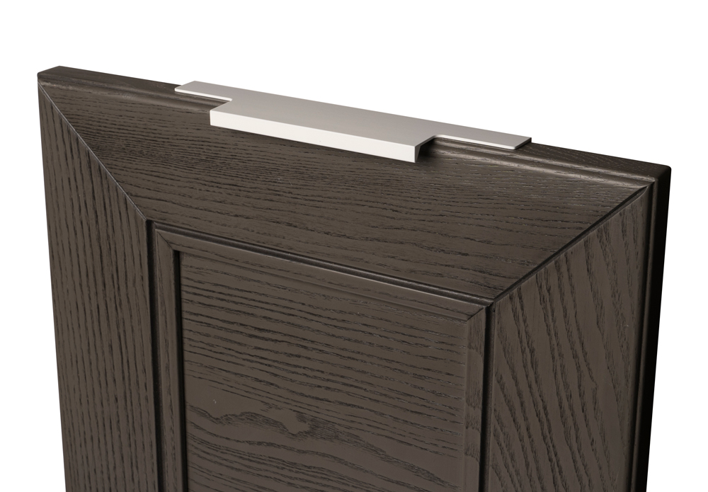 Накладные профильные ручки устанавливаются на торец дверного полотна, не загружая дополнительными деталями мебельный фасад.