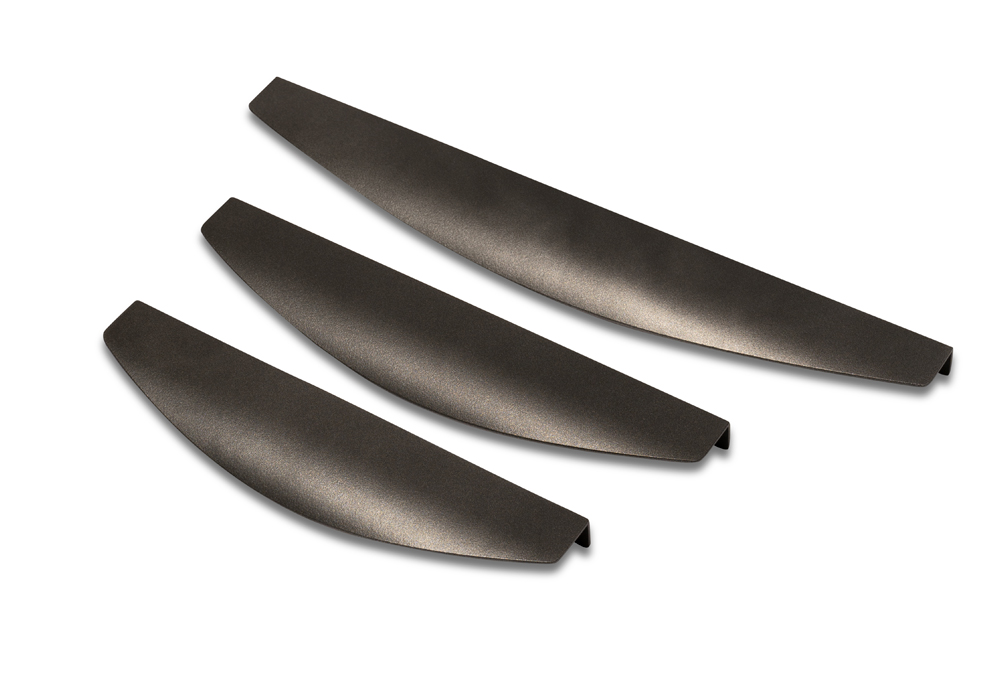 Накладные профильные ручки устанавливаются на торец дверного полотна, не загружая дополнительными деталями мебельный фасад.