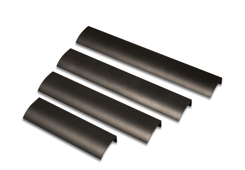 Накладные профильные ручки устанавливаются на торец дверного полотна, не загружая дополнительными деталями мебельный фасад.