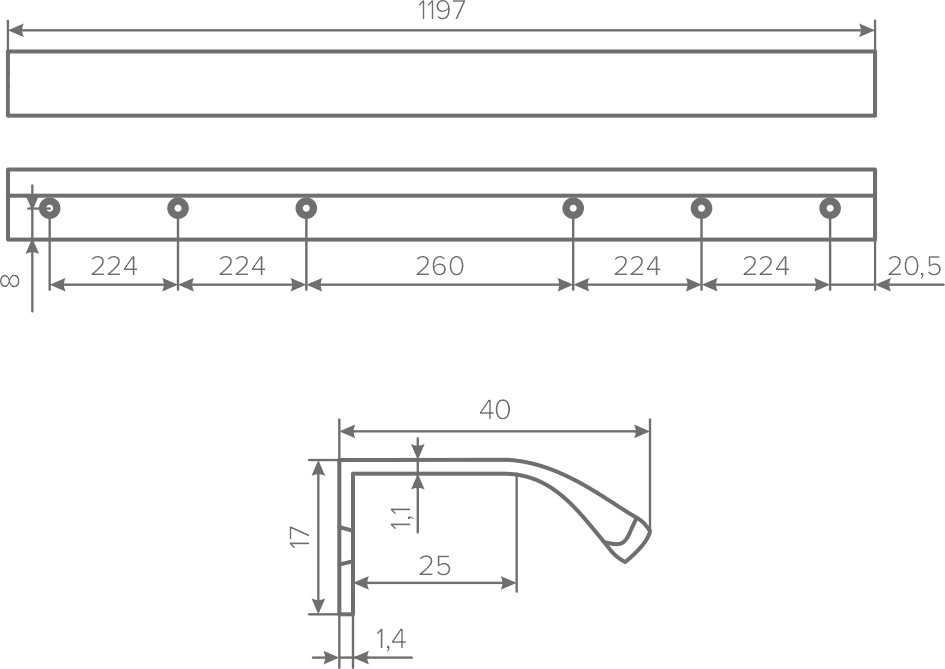 1197x40x17 мм