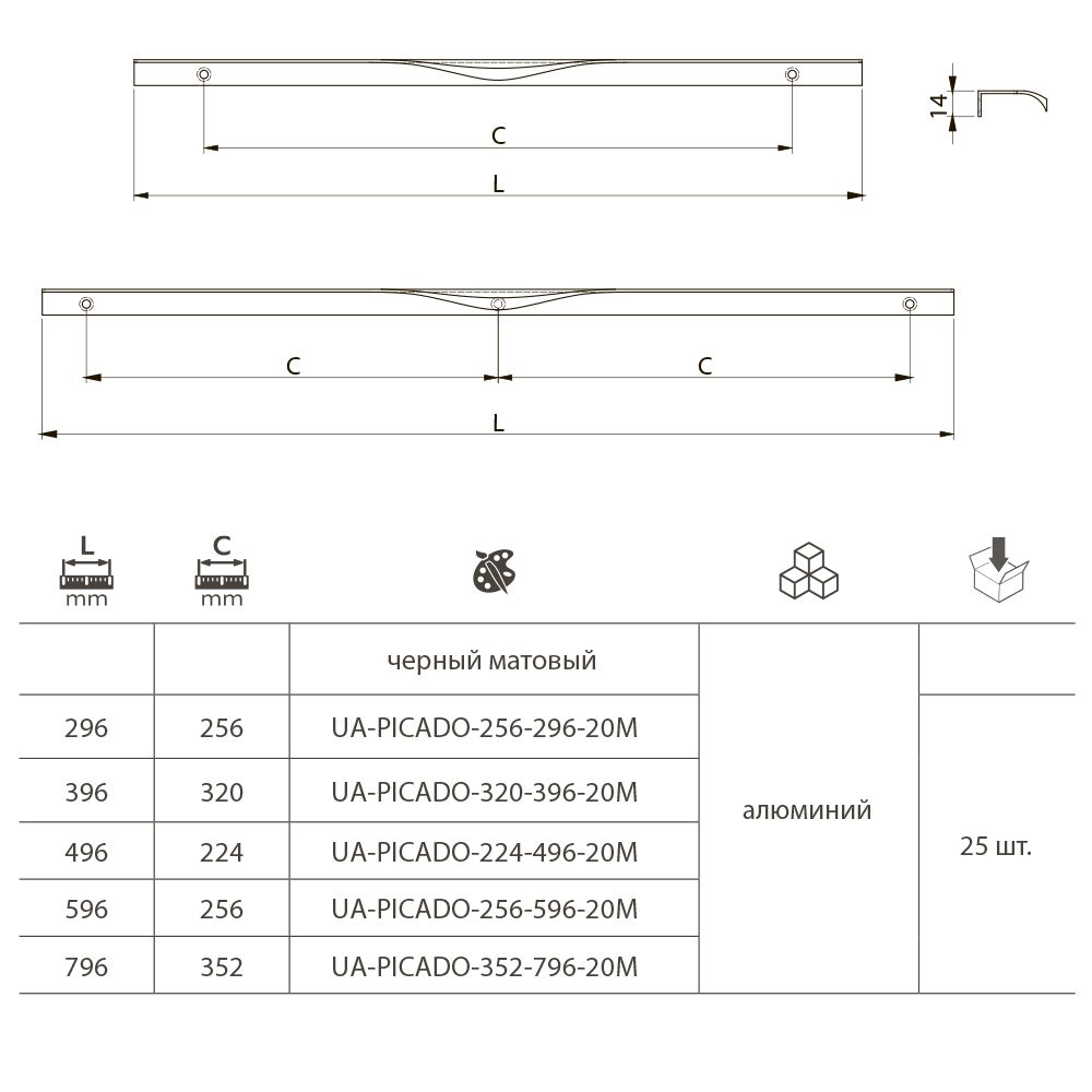 Ручка мебельная, алюминиевая, PICADO, 320/396 - лицевая фурнитура профильного типа; ручка с волнообразным элементом корпуса, устанавливаемая посредством наложения на торец фасада и закрепляемая саморезами.