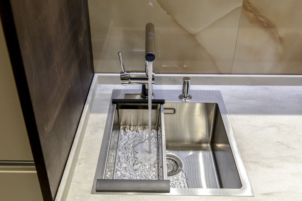 Коландер может крепиться в чаше мойки, либо на ее крыле.