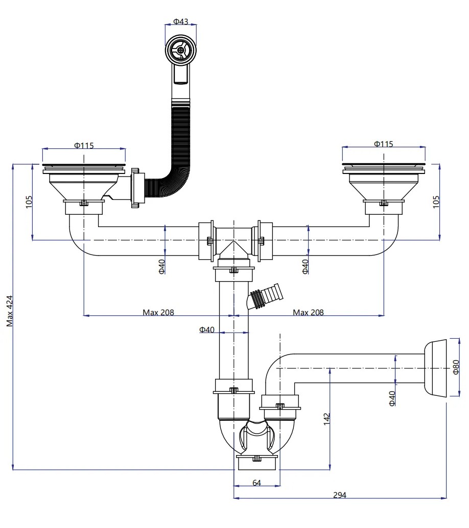 - отвод к посудомоечной или стиральной машине.