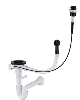 Сифон одинарный 3 1/2" полуавтоматический с круглым переливом и отводом, черный