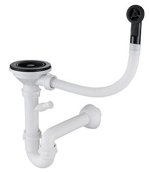 Сифон одинарный 3 1/2" с круглым переливом и отводом, черный