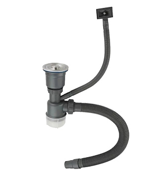 —Сифон одинарный для мойки из нерж. стали с переливом и корзинкой для мусора, нерж. сталь