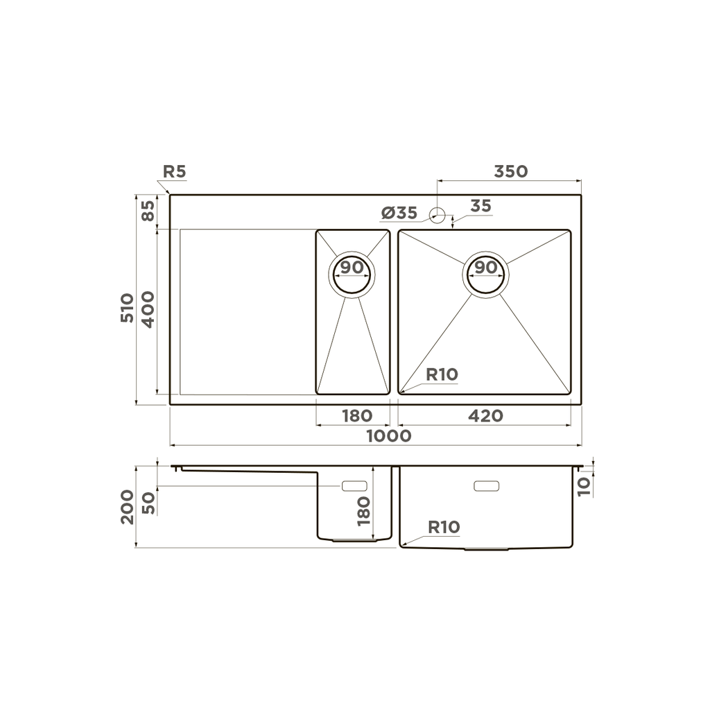 Мойка выполнена из японской высококачественной хромоникелевой нержавеющей стали с покрытием PVD.