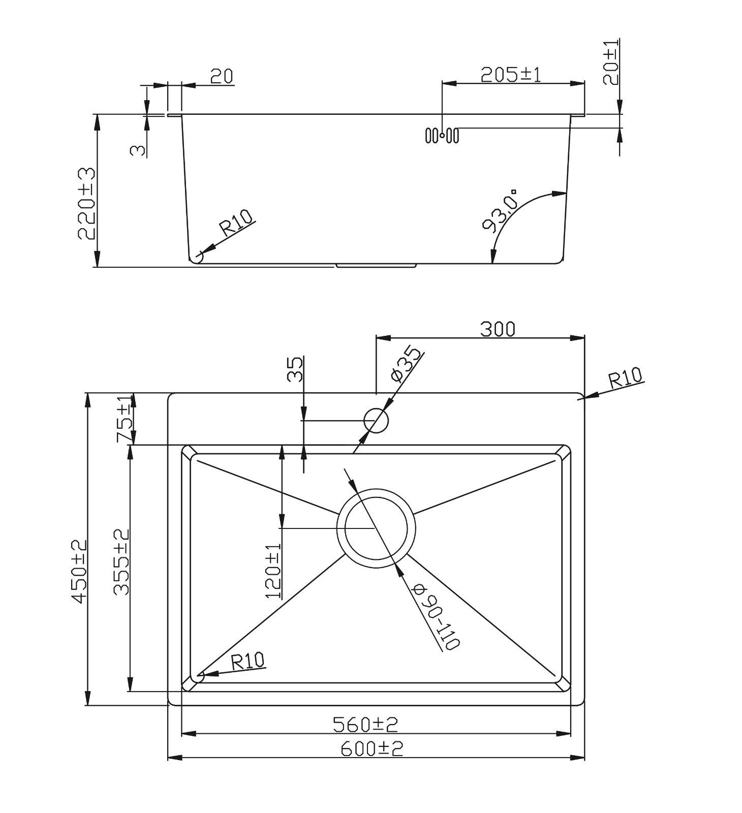 SS304 сталь, толщина стали 3мм по борту и 0,8мм по чаше