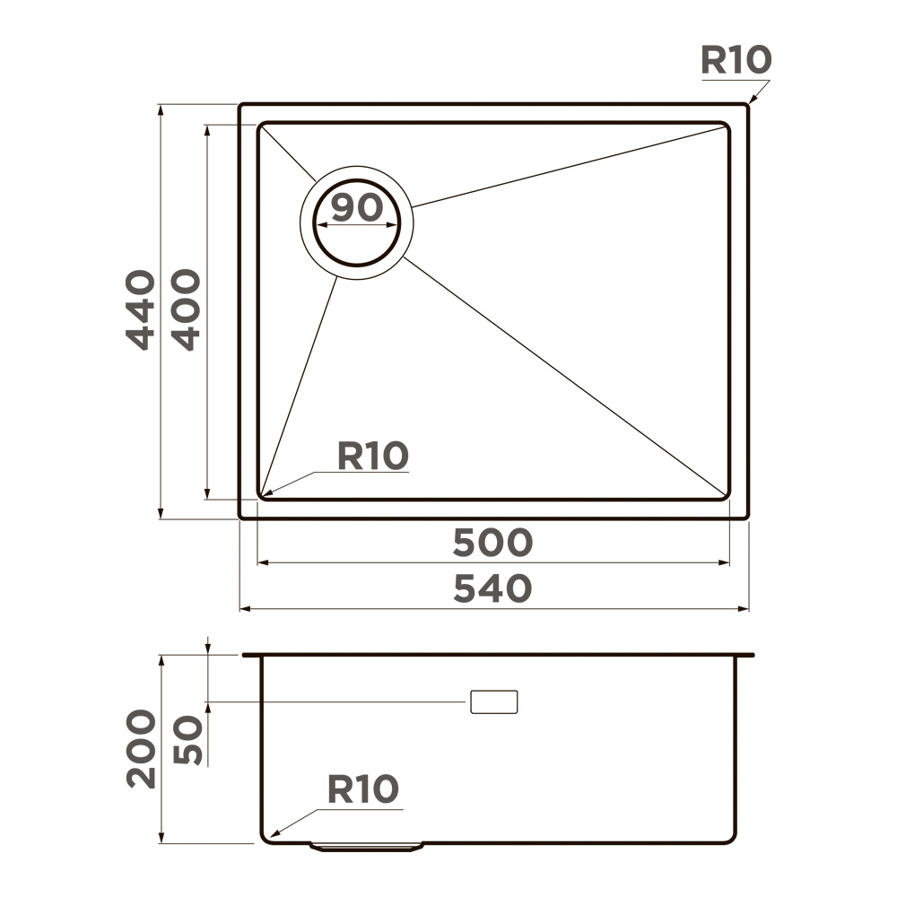 Размер мойки, мм: 540х440