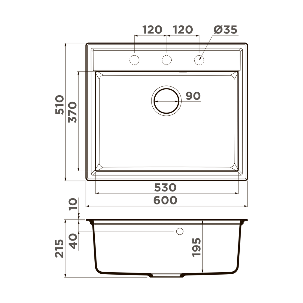 Размер мойки, мм: 600x510