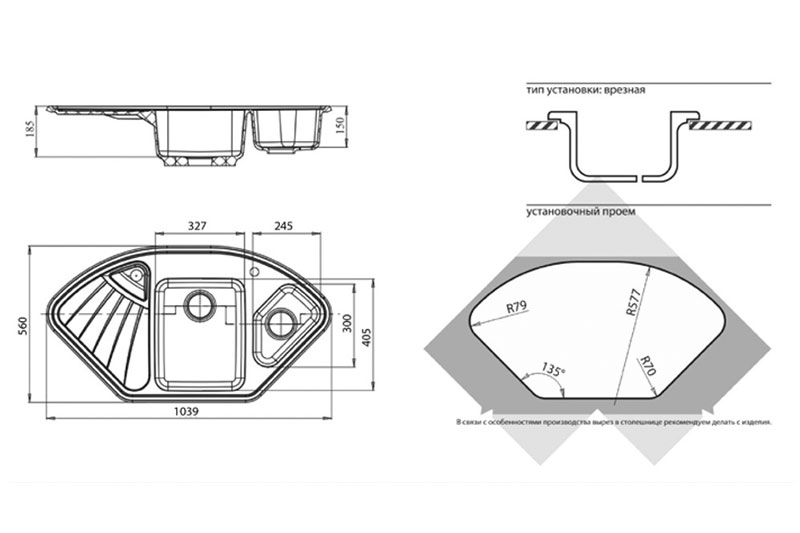 Ориентация мойки—универсальная
