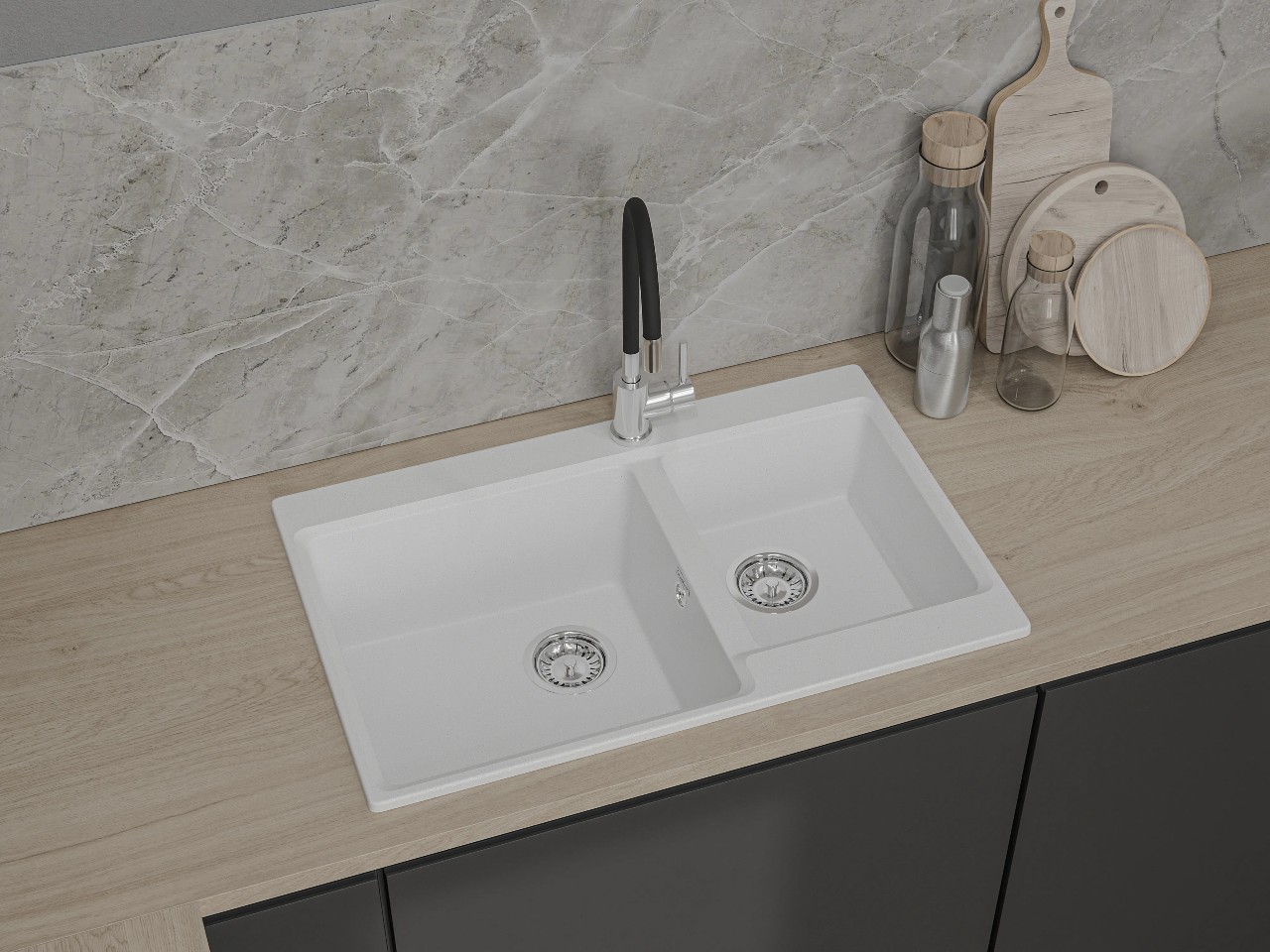 Высокие потребительские характеристики: ударопрочность, гидрофобность, шумопоглащение, стабильность формы и геометрии, идеальное прилегание к столешнице.