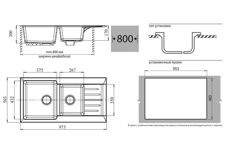 Ориентация мойки—универсальная