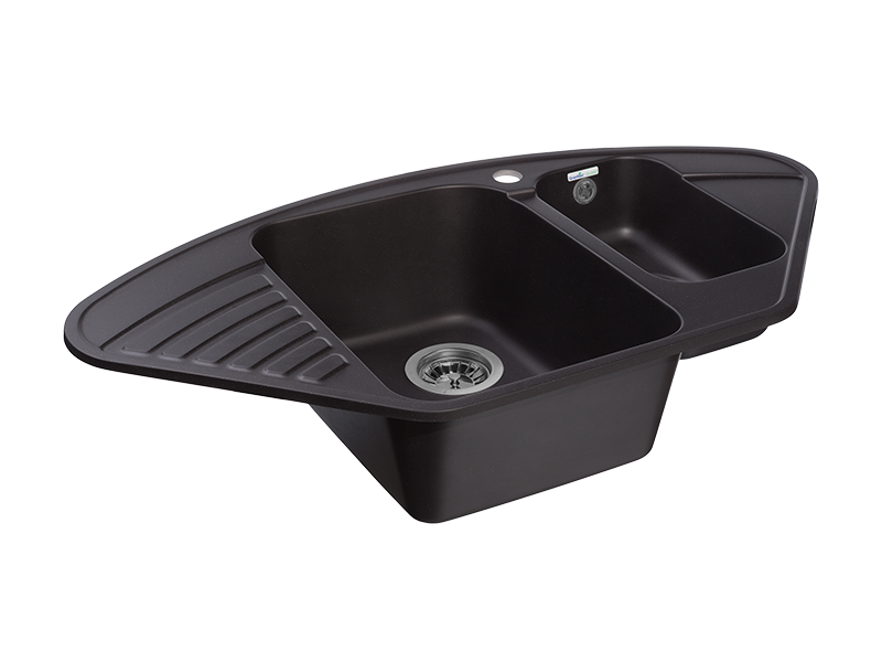 Мойка GranFest QUARZ 14, 927х497 мм, черный (угловая, 1,5 чаши, без сифона)