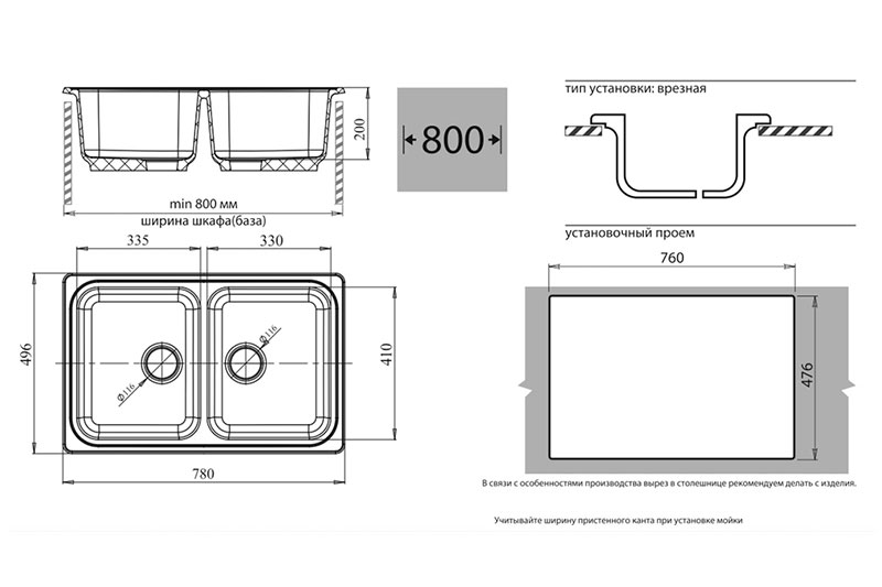 Ориентация мойки—универсальная