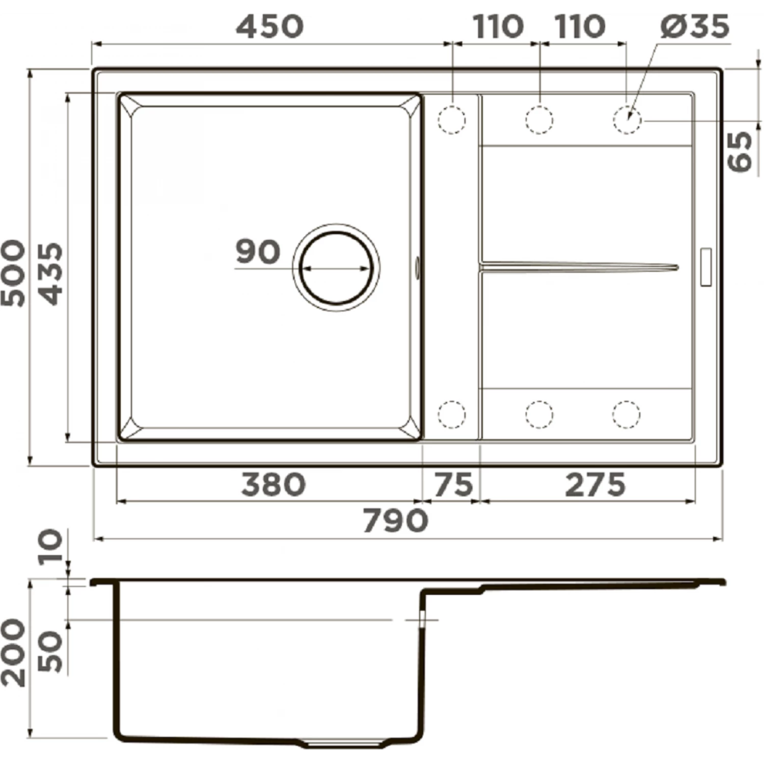 В составе материала Tetogranit Metal: акриловая смола и натуральный гранит с добавлением металлических частиц, которые придают блеск и мерцание поверхности мойки. Tetogranit Metal отличается максимальной устойчивостью к температурным перепадам, ударам, царапинам и пятнам.