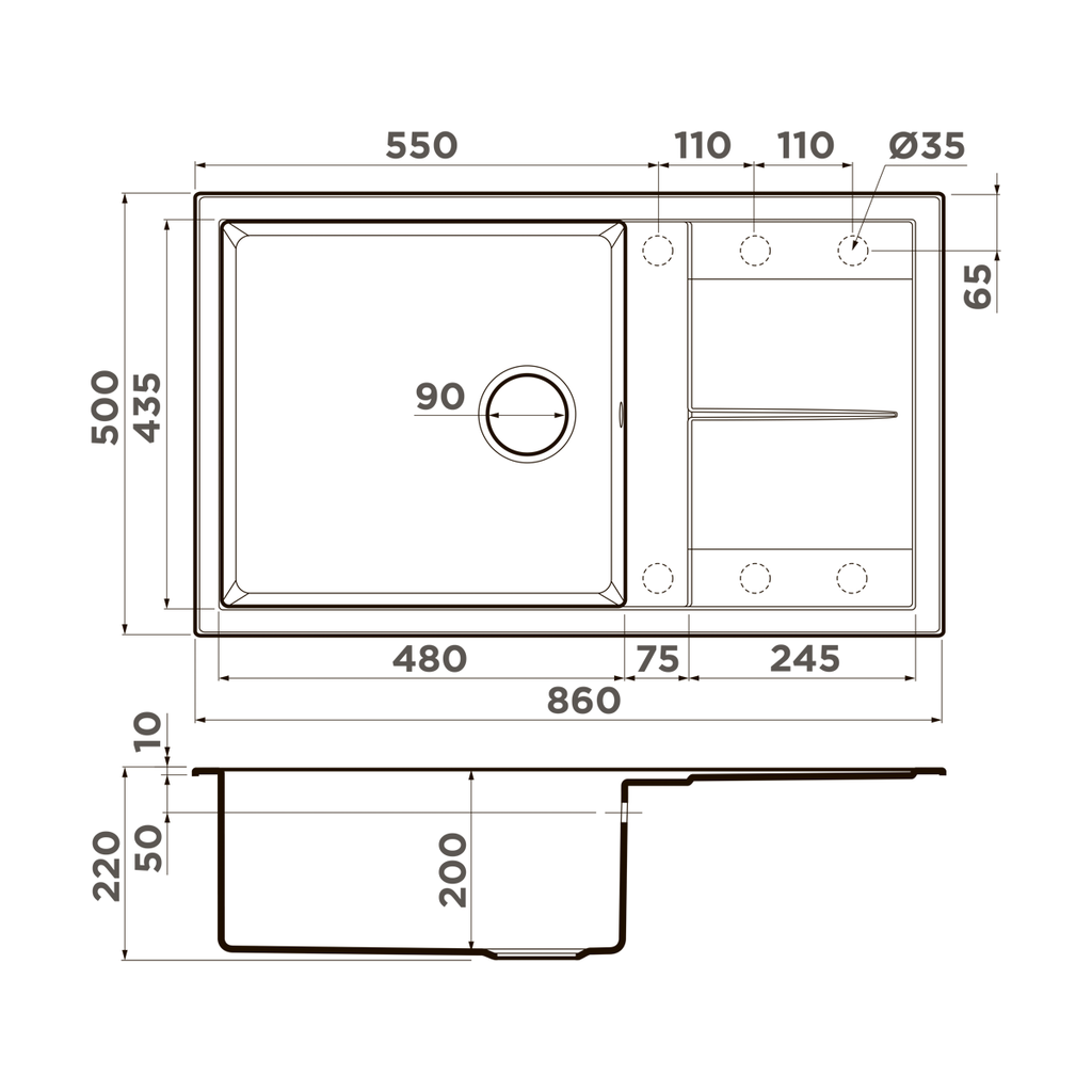 - Идеальное сочетание со смесителями OMOIKIRI Nagano, Tonami, Amagasaki из искусственного камня;