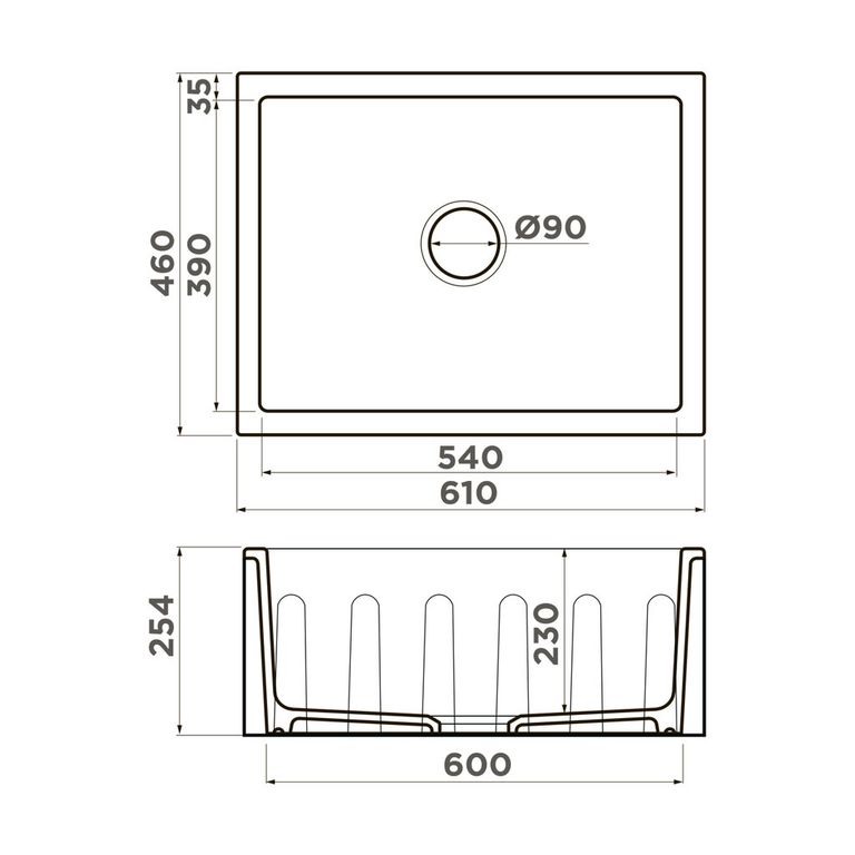 Размер мойки, мм: 610x460