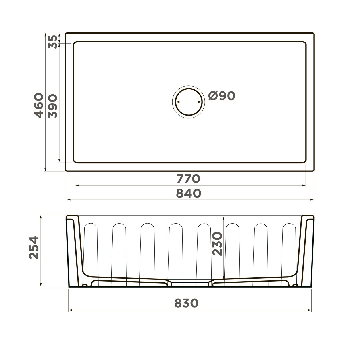 Размер мойки, мм: 840x460