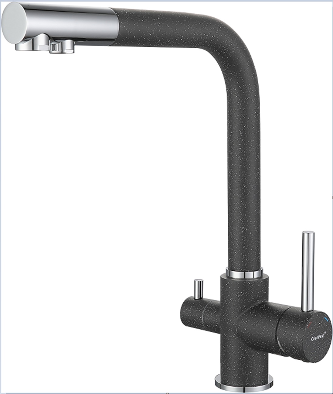 Поверхность смесителя окрашена в цвета мраморных моек GranFest.