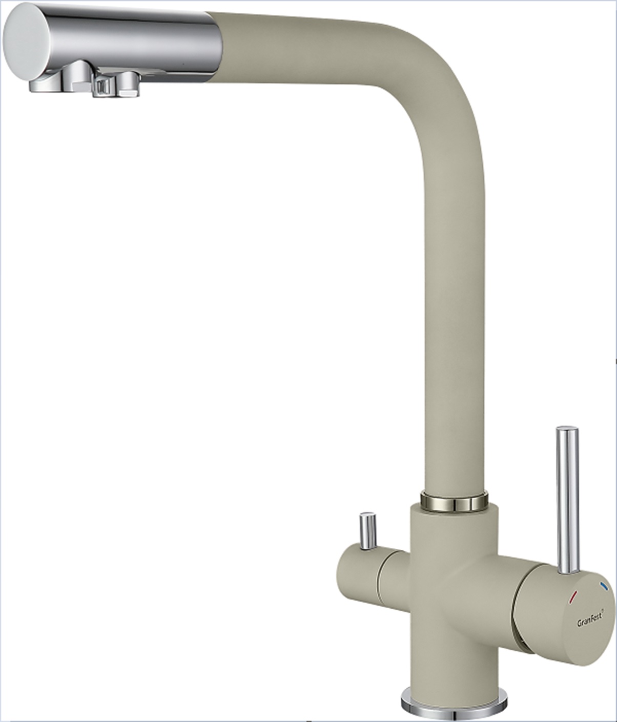 Поверхность смесителя окрашена в цвета мраморных моек GranFest.