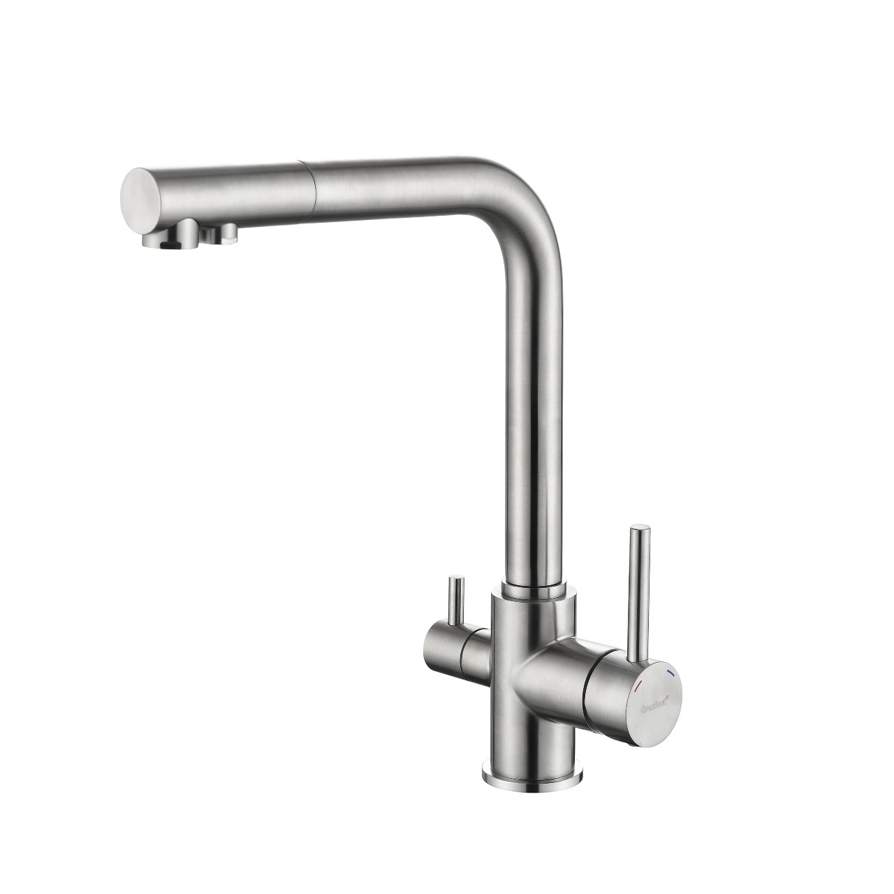 Поверхность смесителя окрашена в цвета мраморных моек GranFest.