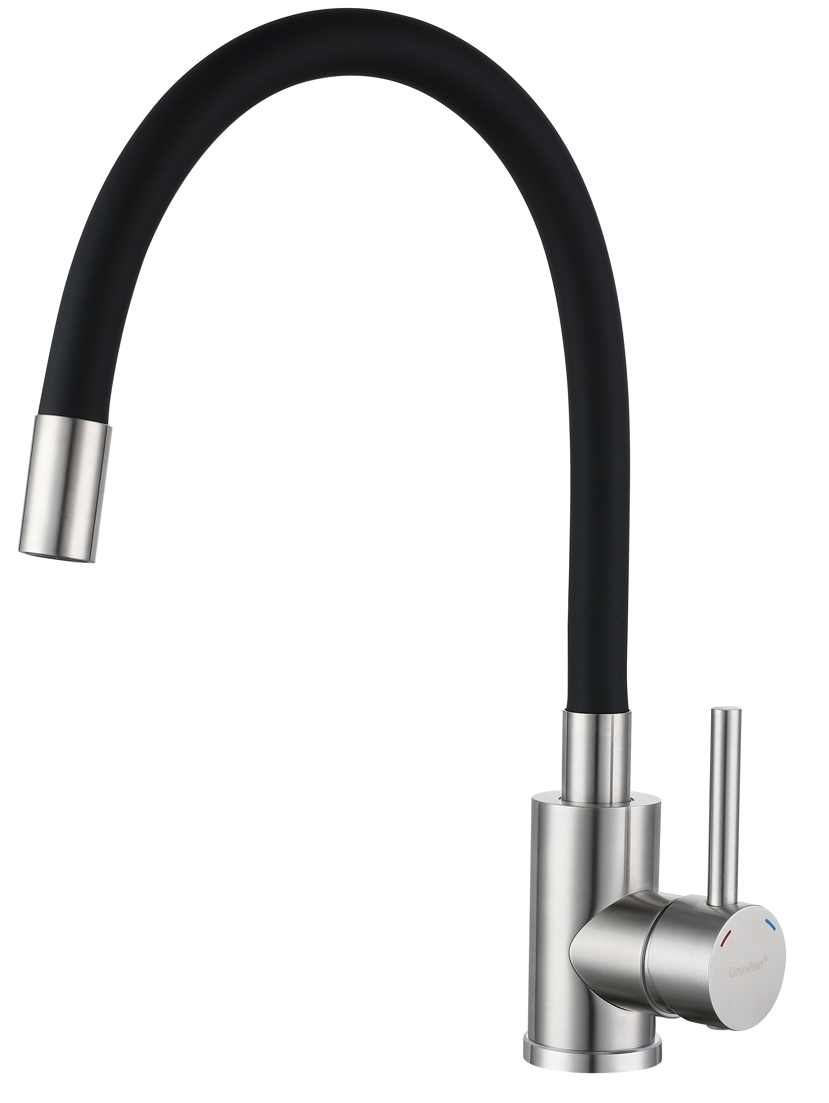 —Смеситель GranFest Quarz 5433, с гибким изливом, нерж. сталь/черный гибкий шланг