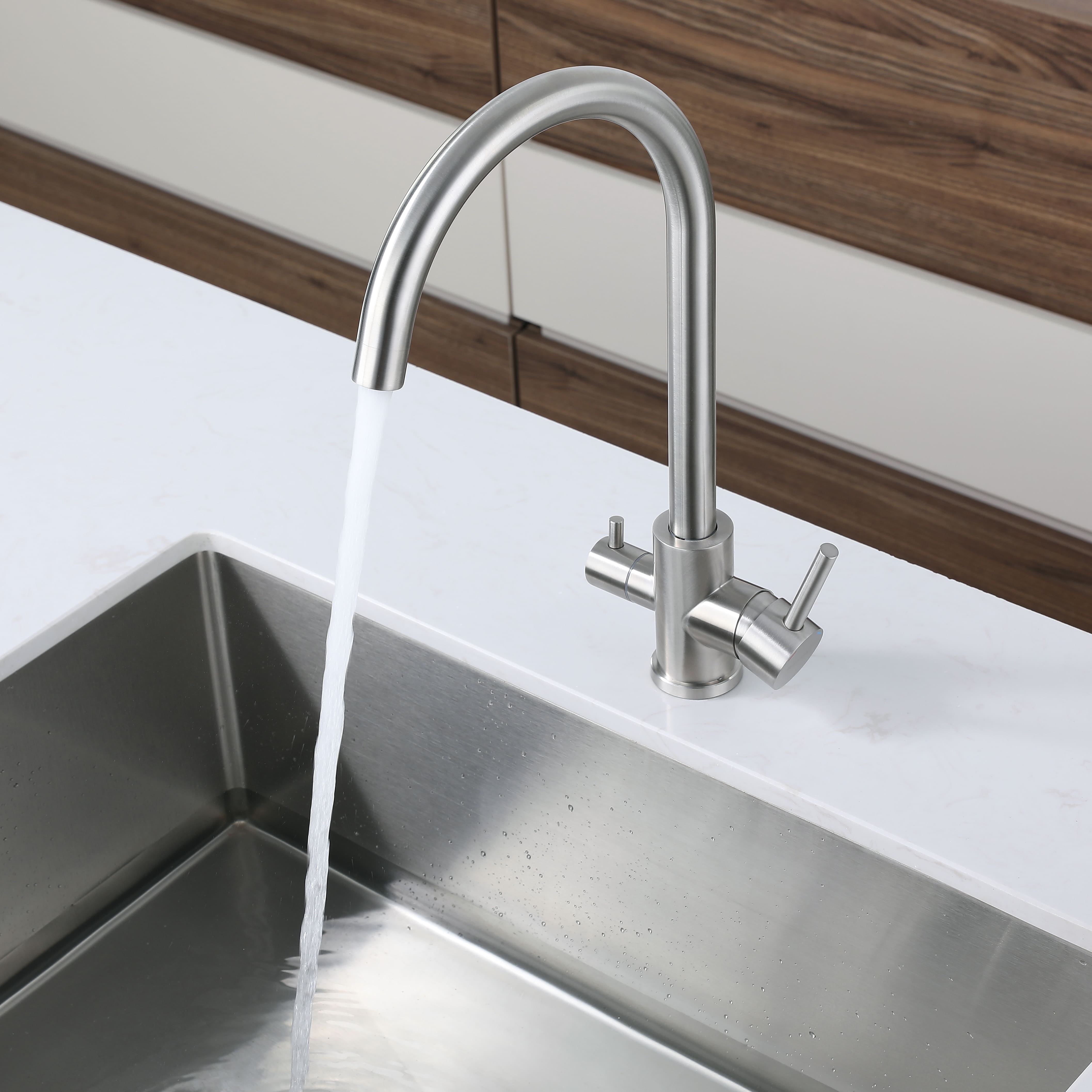 Смеситель Z-5411 изготовлен из нержавеющей стали и прослужит Вам долгие годы. Изящный и надёжный смеситель прекрасно впишется в интерьер любой современной кухни.